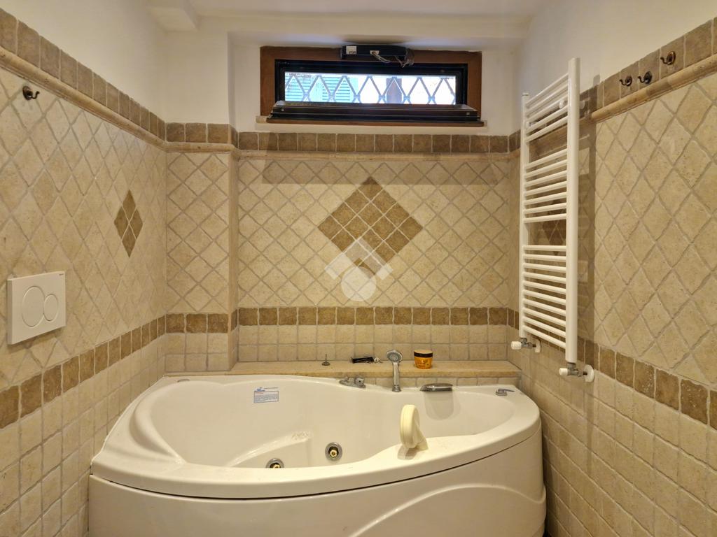 Il secondo bagno si trasforma in un'oasi di benessere, dotato di una vasca idromassaggio.