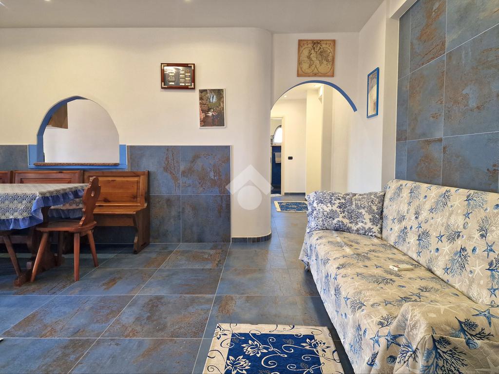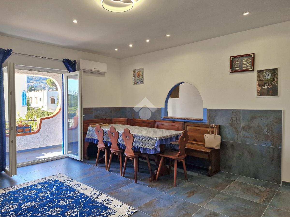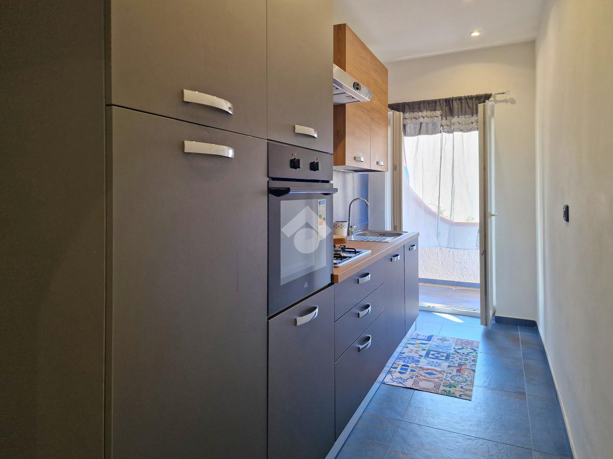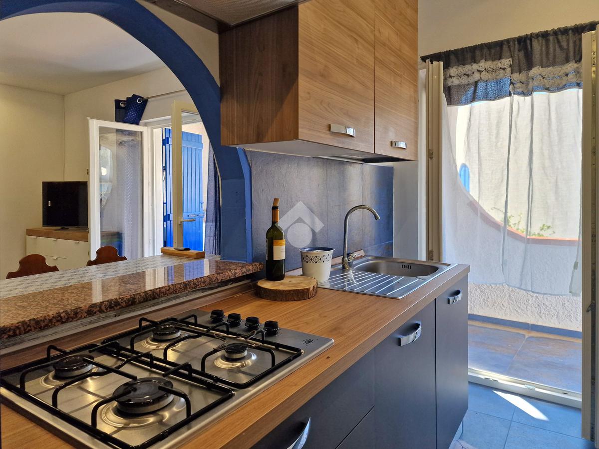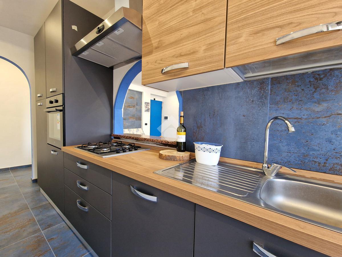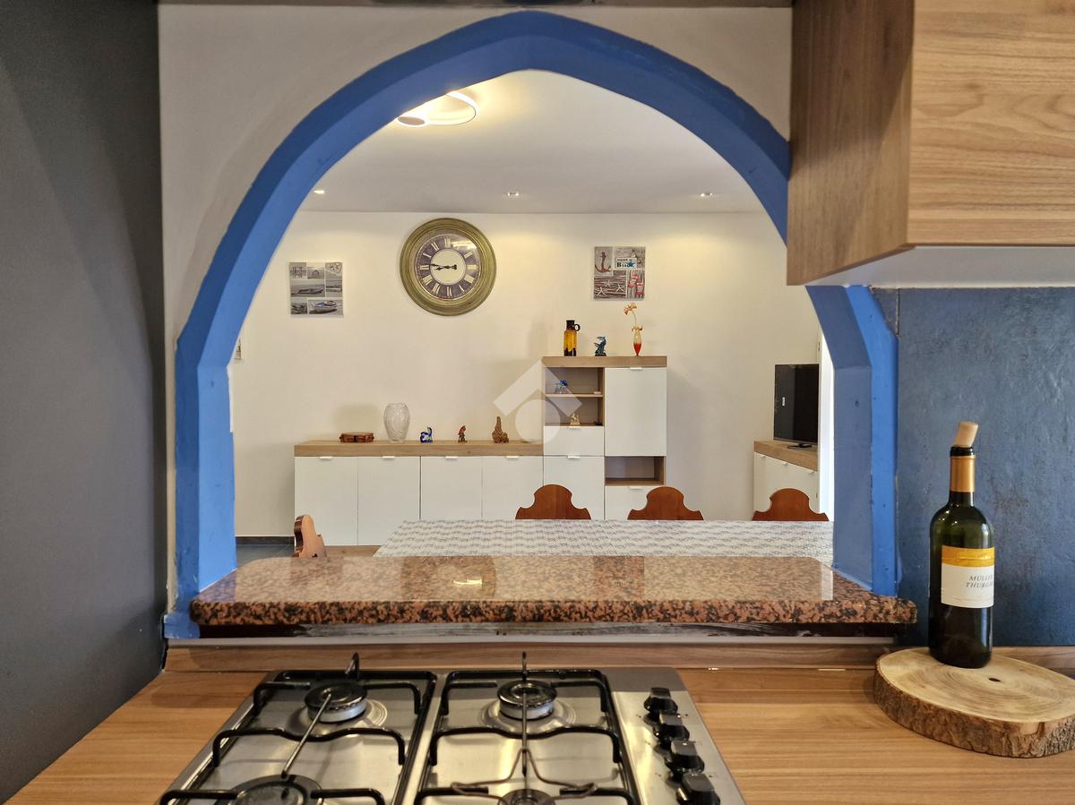 La cucina è separata, con una piccola apertura ad arco che guarda sul soggiorno.
