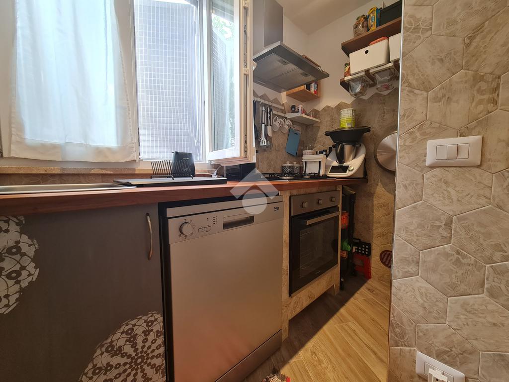 L’immobile si apre su un luminoso soggiorno, accogliente e ben distribuito, affiancato da un cucinotto separato, pratico e funzionale.
